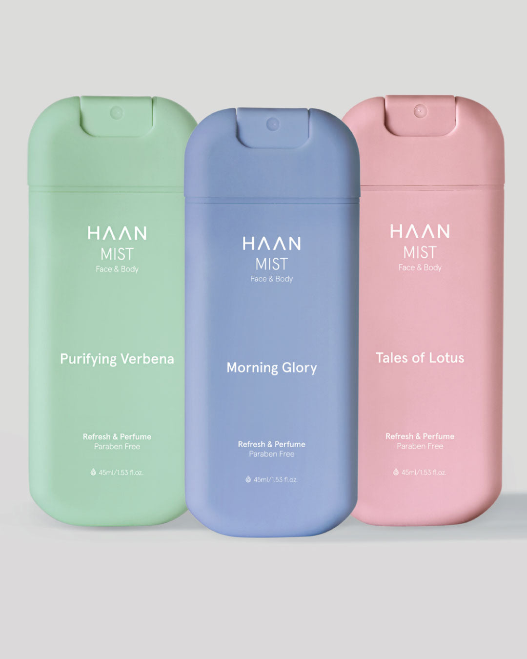 Morning Glory: Aqua, Alcohol Denat., Glycerin, Polyglyceryl-6 Caprylate, Parfum, Benzyl Alcohol, Propanediol, Inulin, Limonene, Alpha-Glucan Oligosaccharide, Dehydroacetic Acid, Linalool, Benzoic Acid, Lycium Barbarum Fruit Extract*, Proline, Sorbic Acid, Coumarin, Potassium Sorbate, Sodium Benzoate, Citral. Purifying Verbena: Aqua, Alcohol Denat., Glycerin, Polyglyceryl-6 Caprylate, Parfum, Benzyl Alcohol, Propanediol, Inulin, Linalool, Alpha-Glucan Oligosaccharide, Dehydroacetic Acid, Limonene, Citral, Benzoic Acid, Geraniol, Lycium Barbarum Fruit Extract*, Proline, Sorbic Acid, Potassium Sorbate, Sodium Benzoate. Tales of Lotus: Aqua, Alcohol Denat., Glycerin, Parfum, Polyglyceryl-6 Caprylate, Benzyl Alcohol, Propanediol, Inulin, Alpha-Glucan Oligosaccharide, Dehydroacetic Acid, Linalool, Hexyl Cinnamal, Benzoic Acid, Lycium Barbarum Fruit Extract*, Benzyl Salicylate, Proline, Sorbic Acid, Alpha-Isomethyl Ionone, Eugenol, Potassium Sorbate, Sodium Benzoate.